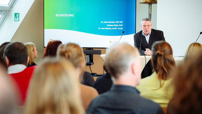 Rund 100 Vertreterinnen und Vertreter aus Industrie, Handel, Politik, Verwaltung, Wissenschaft, NGOs, PROs und der Entsorgungswirtschaft diskutierten die zentralen Anforderungen an ein praxistaugliches EPR-System für Textilien.